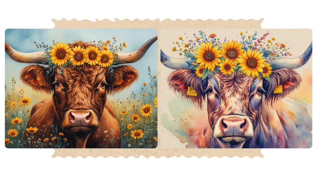 Bring a touch of rustic charm and free-spirited artistry to your projects with this Bohemian Highland Cow Watercolor Graphics Pack. Each piece in this collection features a beautifully highland cow, adorned with floral crowns and surrounded by soft wildflowers—perfectly capturing the cozy, bohemian aesthetic.