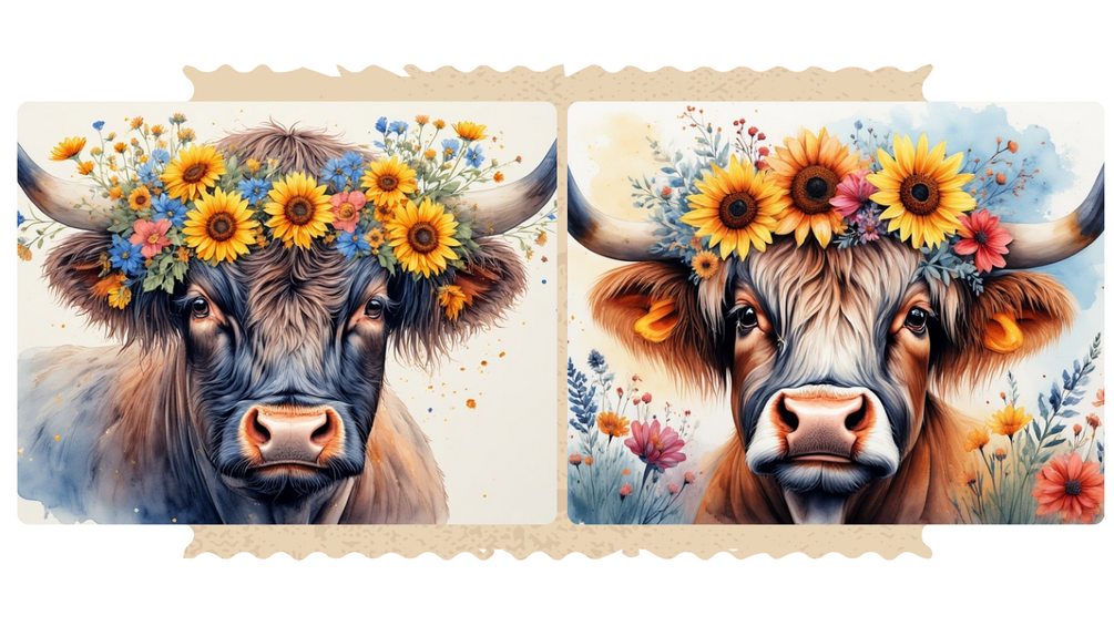 Bring a touch of rustic charm and free-spirited artistry to your projects with this Bohemian Highland Cow Watercolor Graphics Pack. Each piece in this collection features a beautifully highland cow, adorned with floral crowns and surrounded by soft wildflowers—perfectly capturing the cozy, bohemian aesthetic.